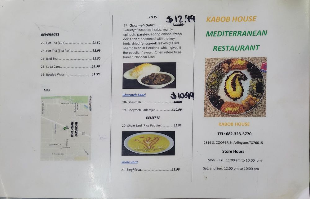 Located in Arlington, Texas, Kabob House offers a delightful experience for lovers of Mediterranean cuisine. This Halal-certified restaurant is a buffet-style establishment with a plethora of vegetarian options. Guests can enjoy their meals in a quiet and spacious setting, with outdoor seating available. Kabob House also offers takeout, delivery, and catering services, making it a convenient choice for any occasion. The menu features a variety of kabobs, salads, and traditional Mediterranean dishes, all made with fresh ingredients and authentic flavors. Whether you're dining with a group, bringing the kids along, or looking for a cozy spot for a date night, Kabob House has something for everyone. Indulge in their delicious offerings and experience the warm hospitality that sets this restaurant apart.